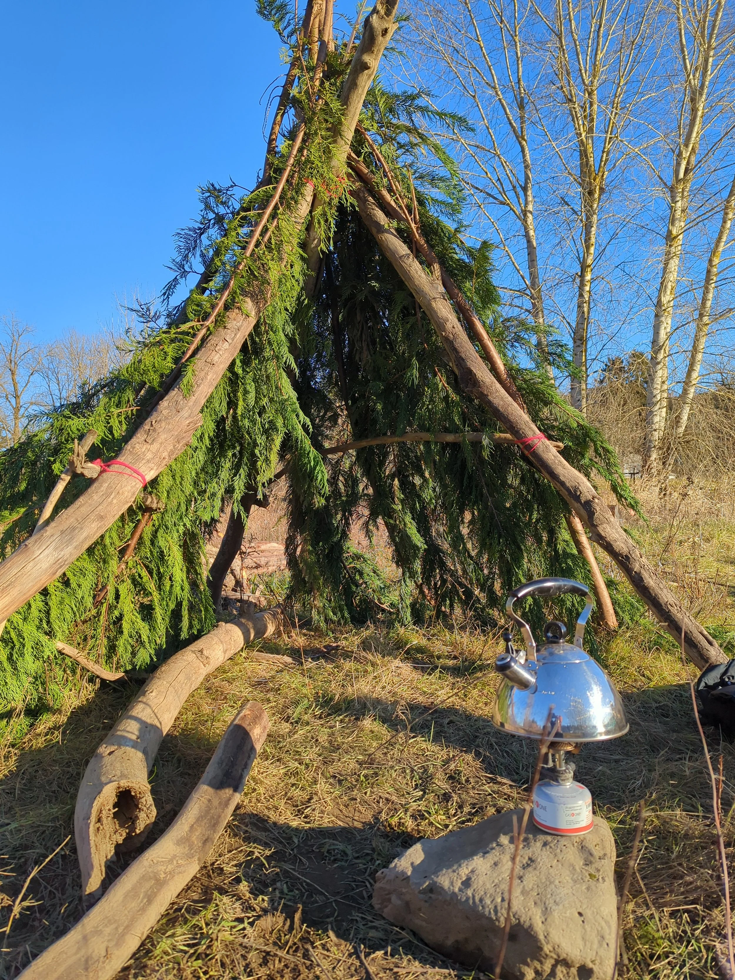 We learn new knot tying skills and harness our creative building power. Using found materials we create forts and structures of all sorts!